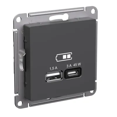 Розетка USB A + тип-C 45Вт высокоскор.заряд. QC, PD Systeme Electric AtlasDesign Базальт ATN001429