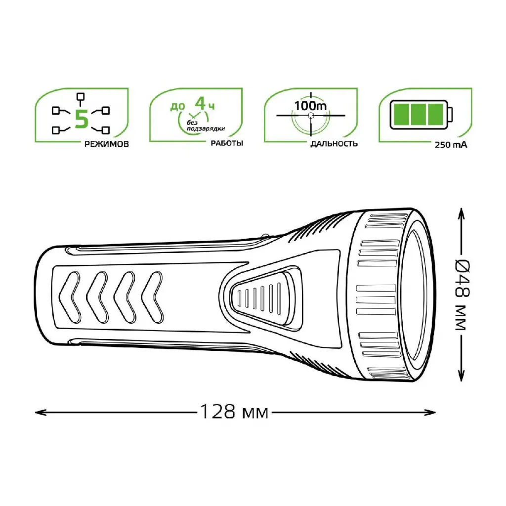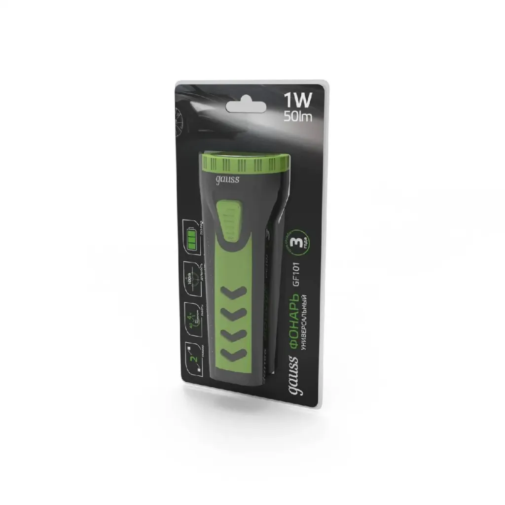 Ручной светодиодный фонарь Gauss от батареек 90х25 200 лм GF109