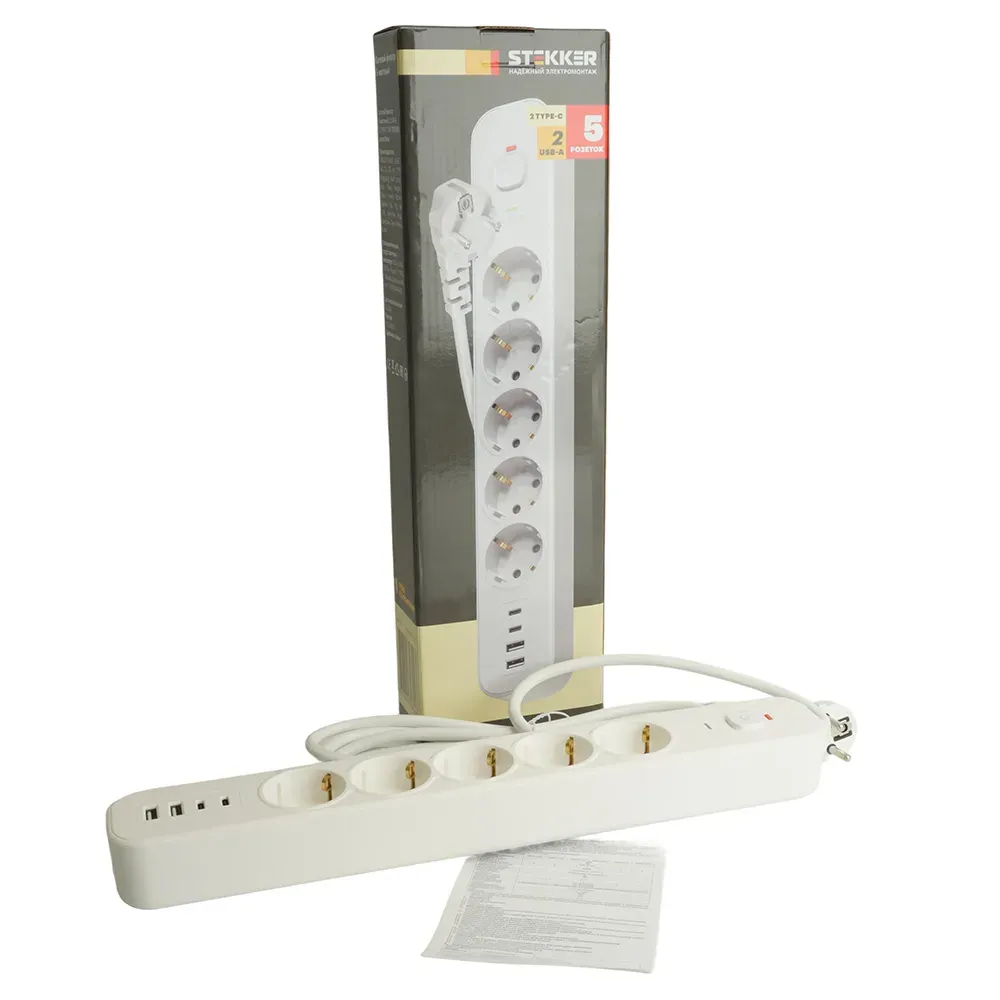 Сетевой фильтр 5-местный с/з и 2 USB-A+2 Type-C 3 Stekker Nova HM21-51-03 50103