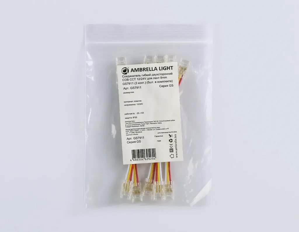 Соединитель гибкий двухсторонний Ambrella Light Illumination COB CCT 12/24V для лент 8mm (3 конт.) (5шт. в комплекте) GS7911