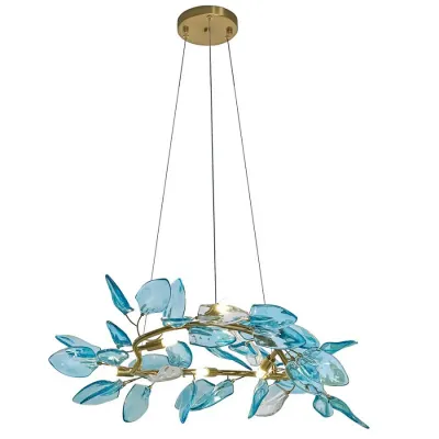 Люстра светодиодная золотистом каркасе с синими стеклянными листьями Blue Light Wreath