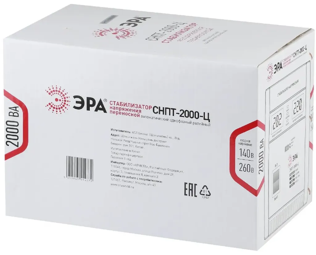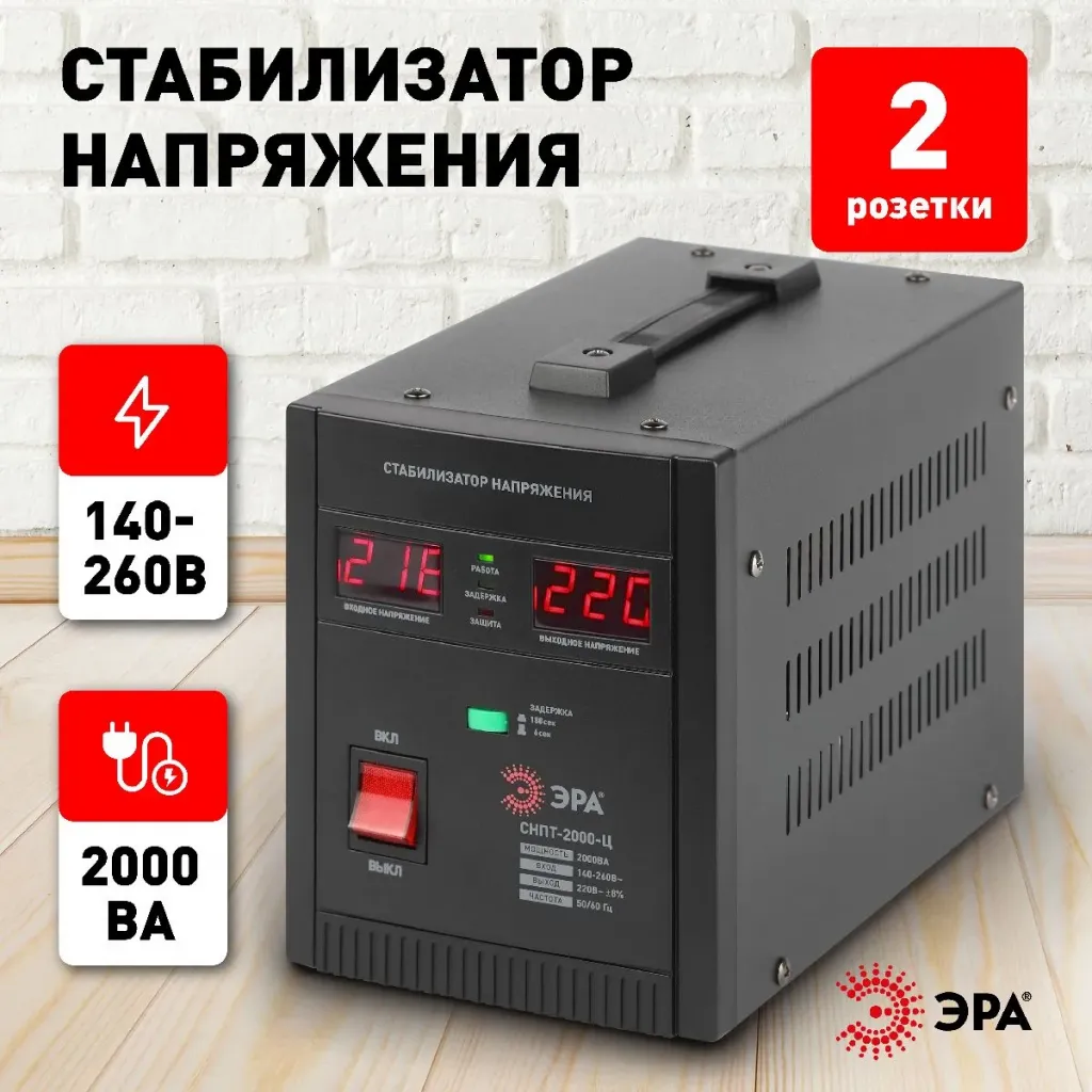 Стабилизатор напряжения переносной Эра СНПТ-2000-Ц Б0020160
