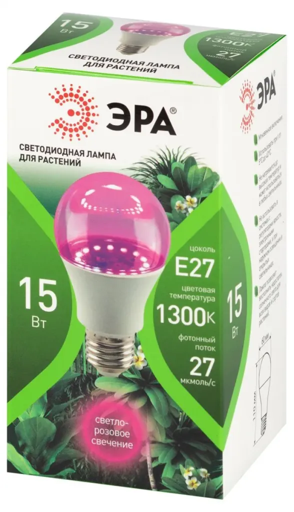 Светодиодная фитолампа для растений Эра ФИТО А60-15W-PFR-E27-GR Б0064527