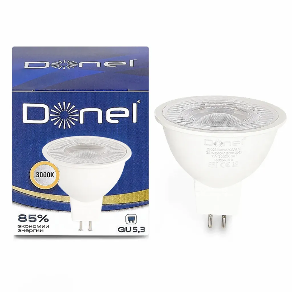 Светодиодная лампа 7Вт, MR16, 220В, GU5,3, 3000K, 525Лм, Ra>80, 60°, D50хH50мм