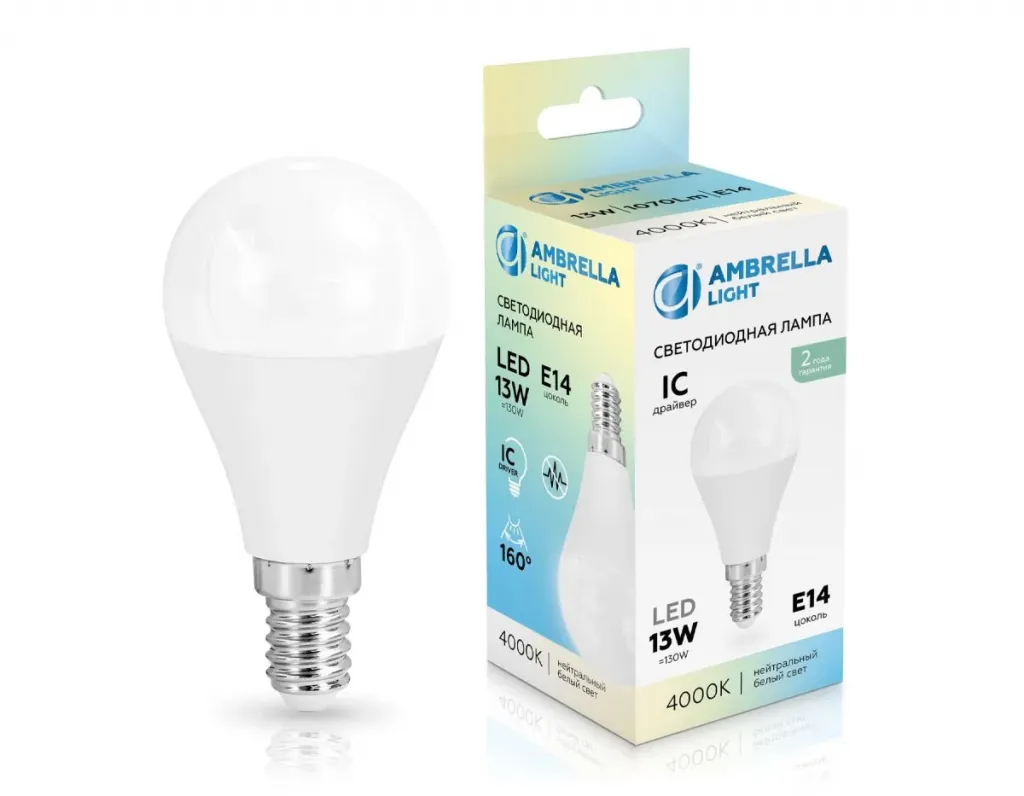 Светодиодная лампа Ambrella Light Bulbing E14 13W 4000K шар 451314