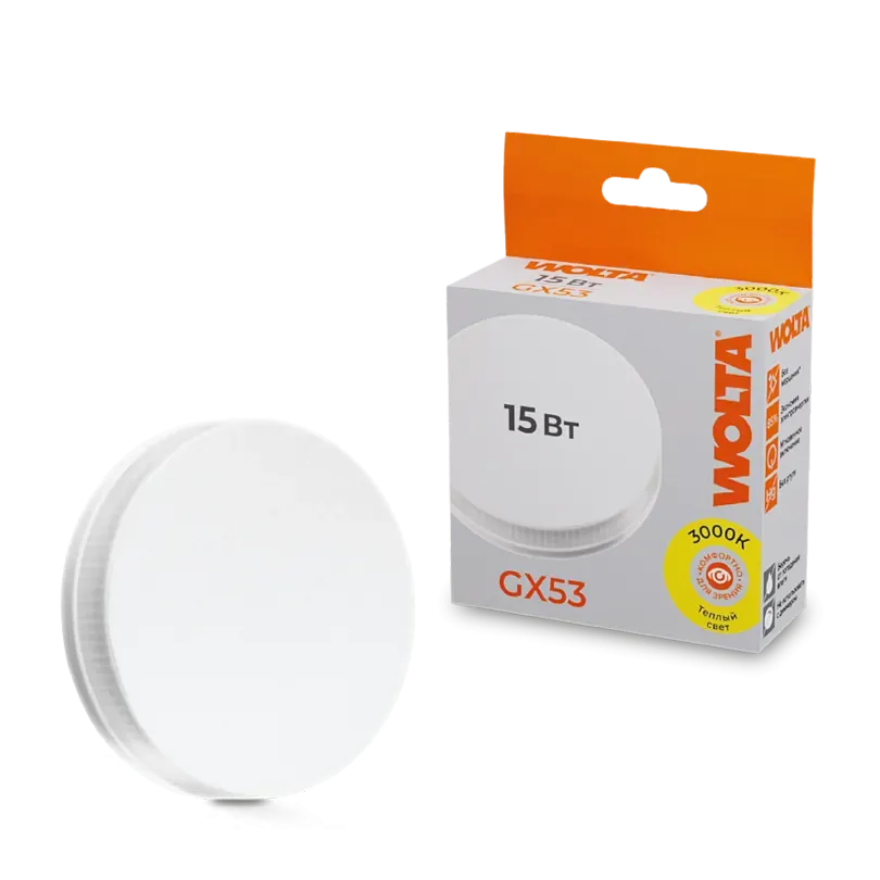 Светодиодная лампа WOLTA 15Вт 3000K GX53 матовая 25Y75R15GX53