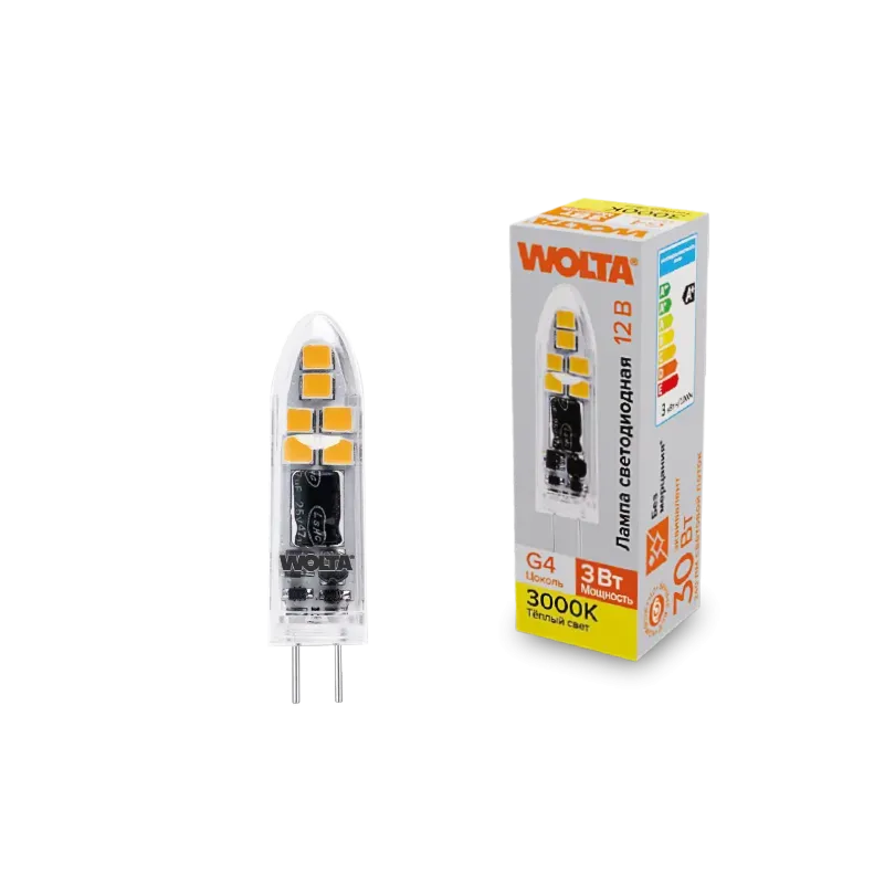 Светодиодная лампа WOLTA 3Вт 3000K G4 матовая WSTD-JC-12V3W3KG4-P