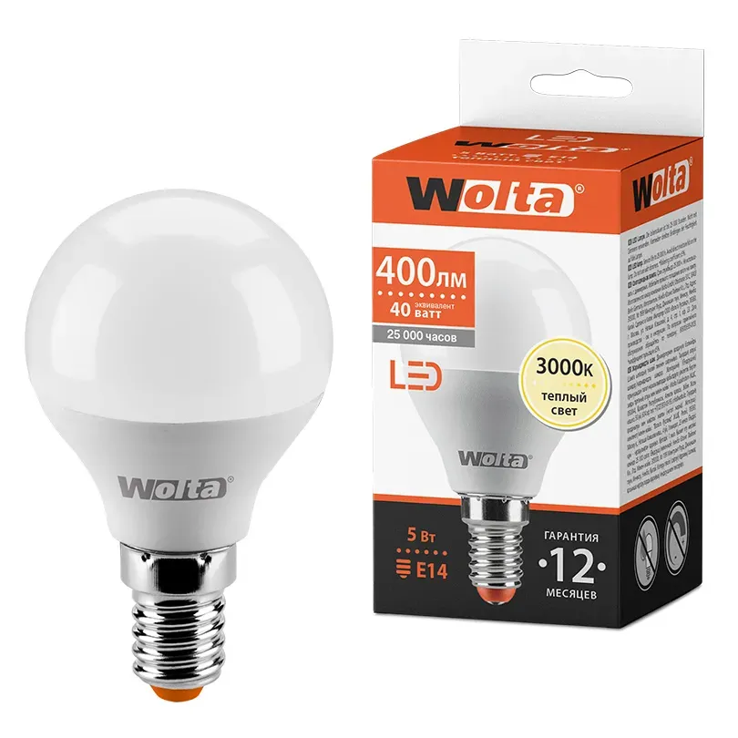 Светодиодная лампа WOLTA 5Вт 3000K E14 груша матовая 25Y45GL5E14