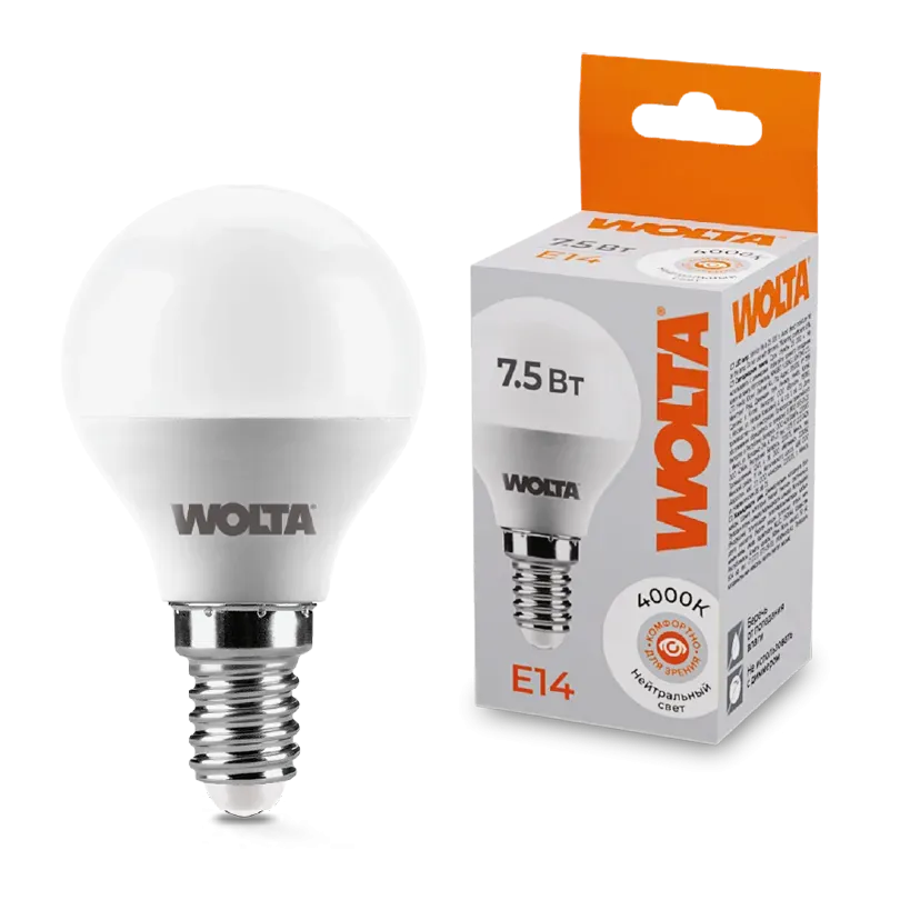Светодиодная лампа WOLTA 7.5Вт 4000K E14 груша матовая 25S45GL7.5E14