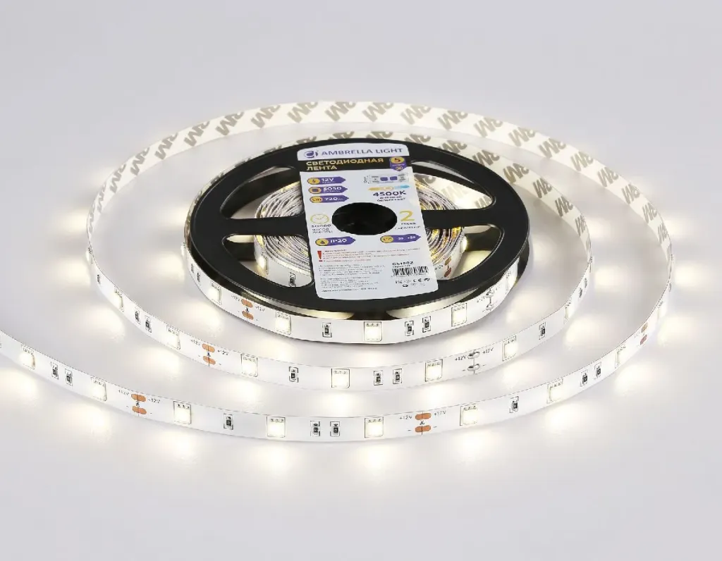 Светодиодная лента Ambrella Light LED Strip 12В 5050 7,2Вт/м 4500K 5м IP20 GS1802