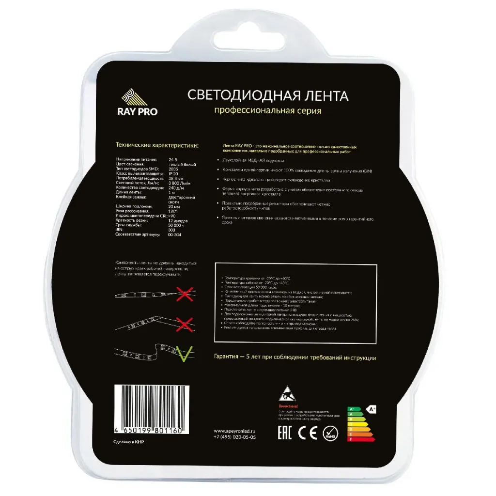 Светодиодная лента Apeyron 12В ЭКО 9,6Вт/м smd2835 120д/м IP65 440Лм/м 5м 3000К LSE-150
