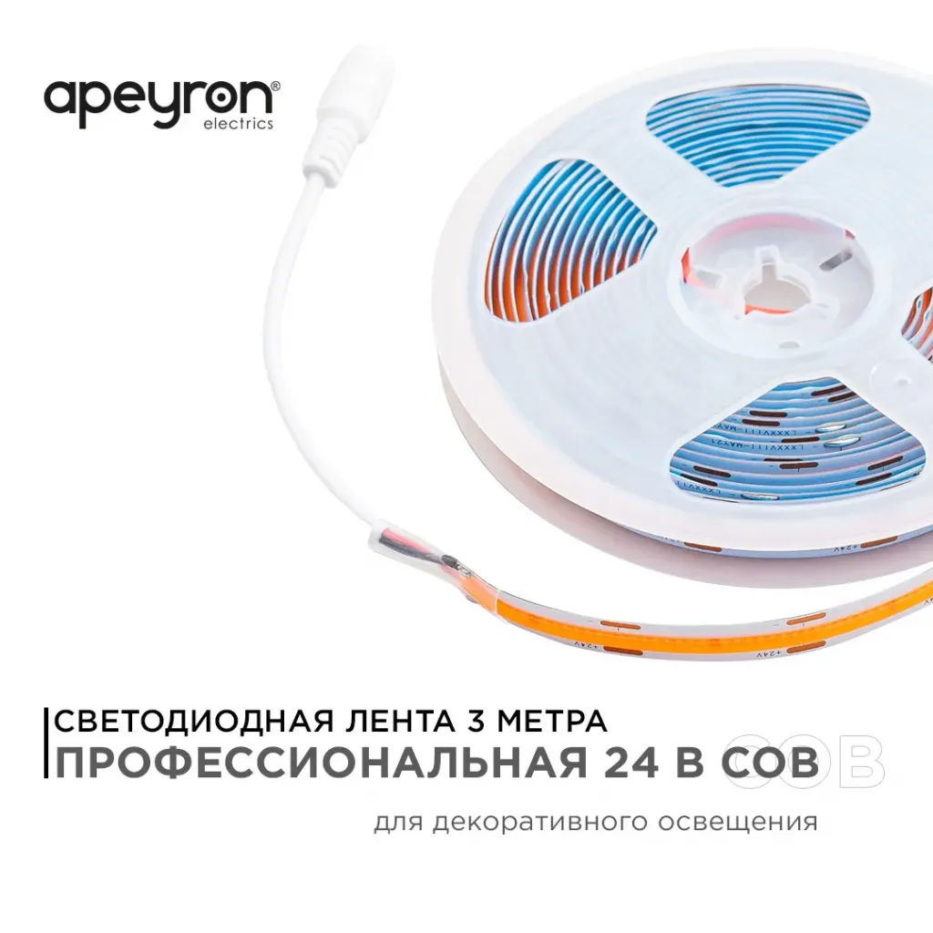 Светодиодная лента Apeyron 12В СТ 12Вт/м smd2835 120д/м IP20 1300Лм/м 3000К 00-118