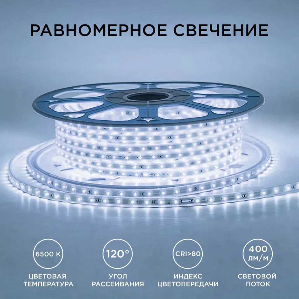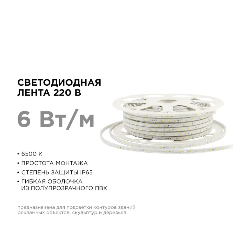 Светодиодная лента Apeyron Стандарт 220В 2835 6Вт/м 6500К 50м IP65 17-42