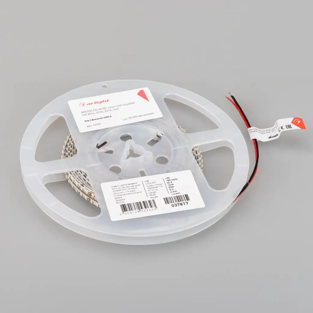 Светодиодная лента Arlight MICROLED-M182-4mm 24V Day4000 (10 W/m, IP20, 2216, 5m) 037817