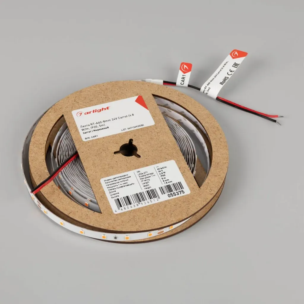 Светодиодная лента Arlight RT-A60-8mm 24V Carrot (4.8 W/m, IP20, 5m) 055375