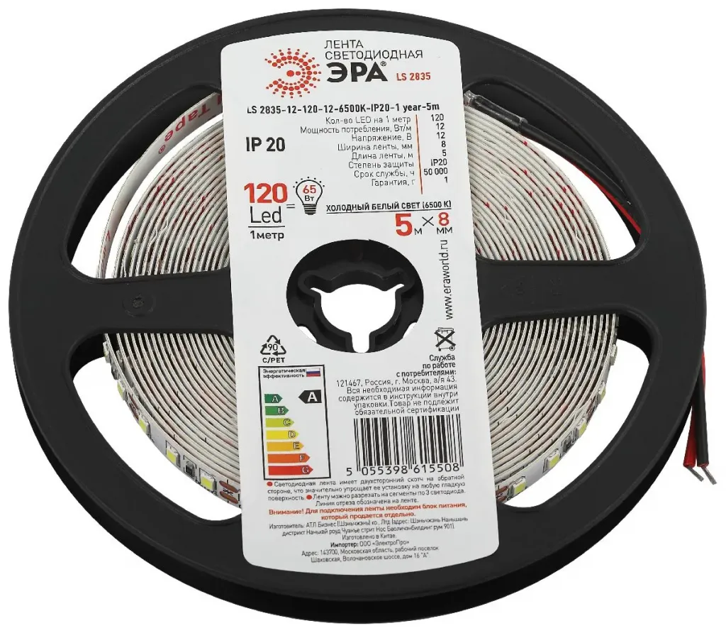 Светодиодная лента Эра 12В 2835 12Вт/м 6500K 5м IP20 LS2835-12-120-12-6500K-IP20-1 year Б0053970