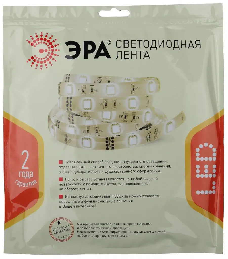 Светодиодная лента Эра 12В 2835 9,6Вт/м 2700K 5м IP65 LS2835-9,6-120-12-2700K-IP65-2year-5m KU-2835AD-120D-WW Б0044113