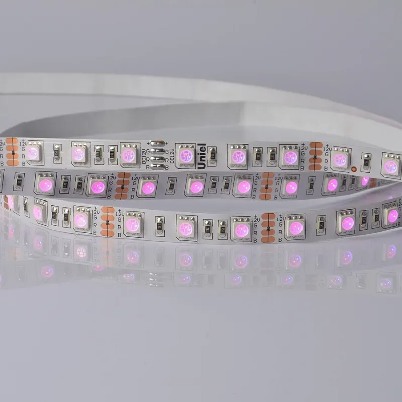 Светодиодная лента Uniel ULS-5050-60LED/m-10mm-IP20-DC24V-14,4W/m-5M-RGB катушка в герметичной упаковке