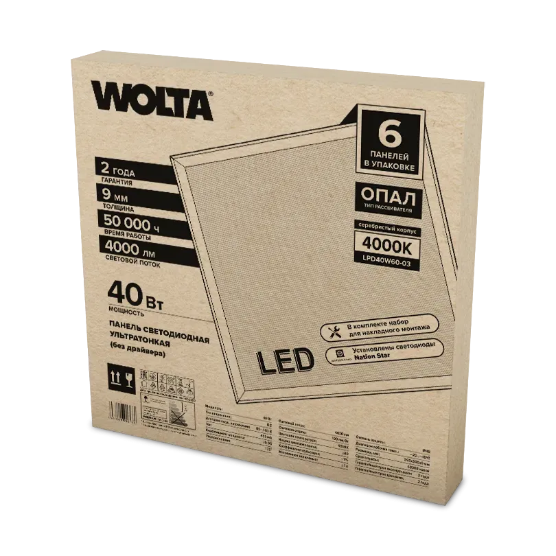 Светодиодная панель Wolta LP LPD40W60-03