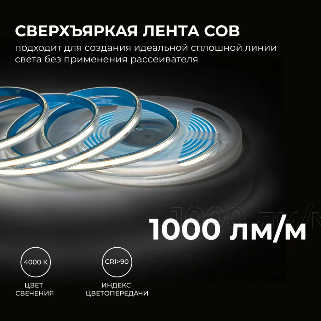 Светодиодная лента Apeyron 24В COB 15Вт/м 4000К 10м IP20 00-484