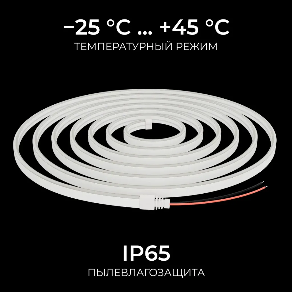 Светодиодный неон Apeyron 24В, 10Вт/м, 400Лм/м, 6500К (х.б.), smd 2835 120д/м, PCB 8мм, 6х12мм, 5м, IP65 17-302