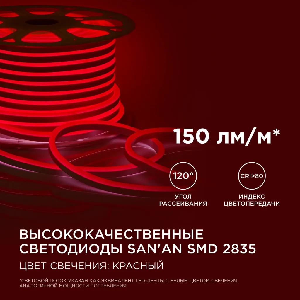 Светодиодный неон Apeyron Стандарт 220В 2835 8Вт/м красный 50м IP65 10-72