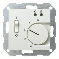 039203 Терморегулятор с размыкающим контактом, выключателем и контрольной лампой белый глянец Gira