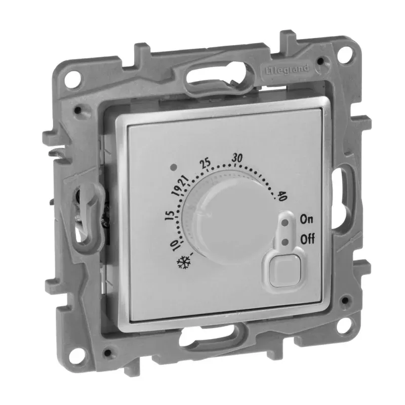 Термостат Legrand Etika с внешним датчиком для тёплых полов алюминий 672430