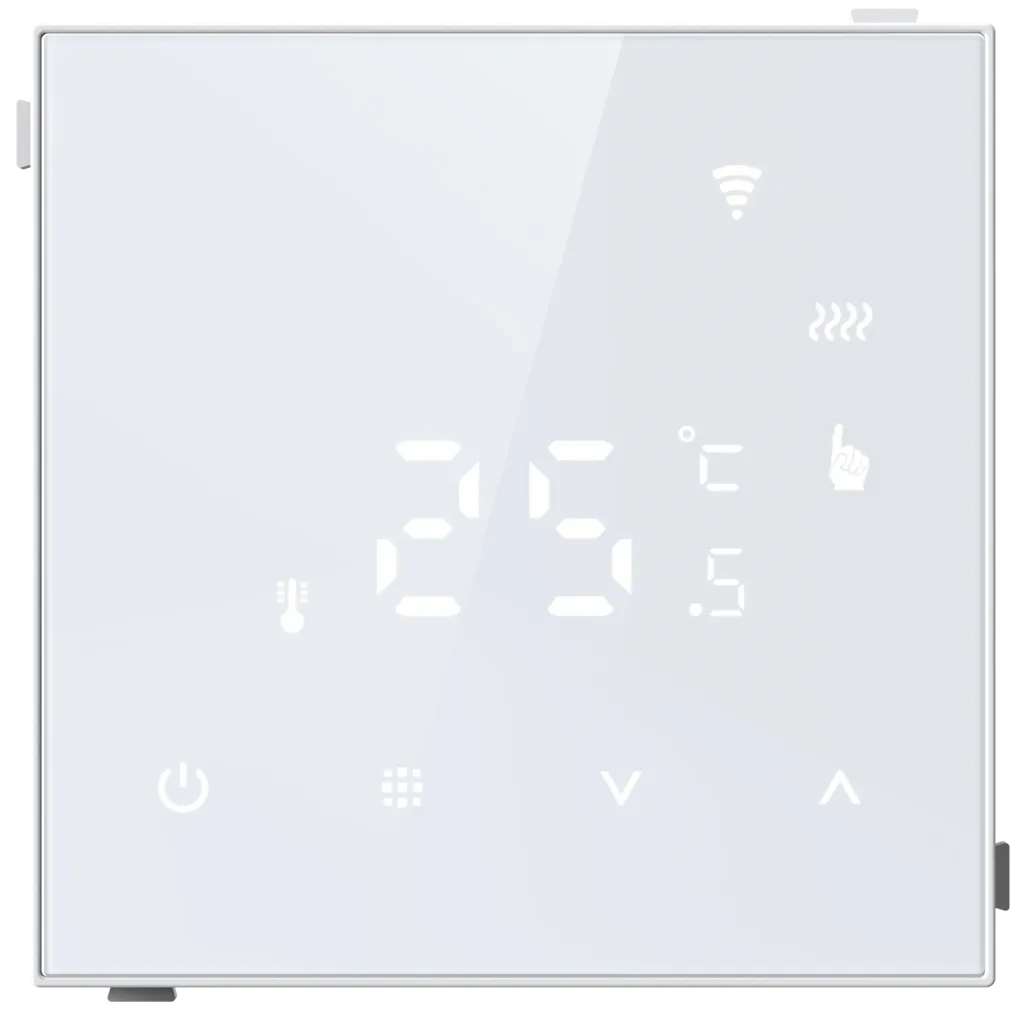 Термостат с датчиком пола с Wi-Fi, программируемый через приложение, белое стекло