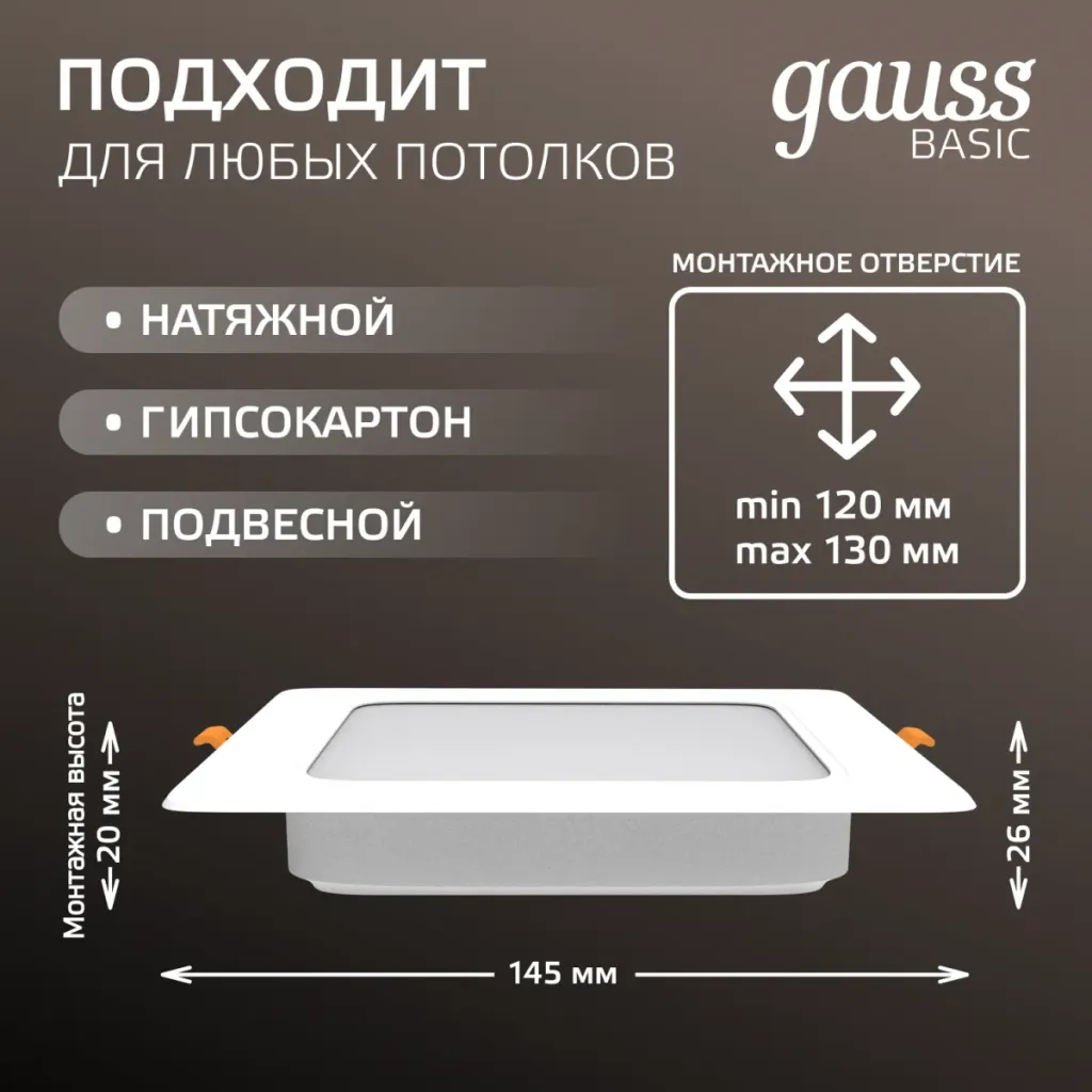 Встраиваемый светодиодный светильник Gauss 939111112