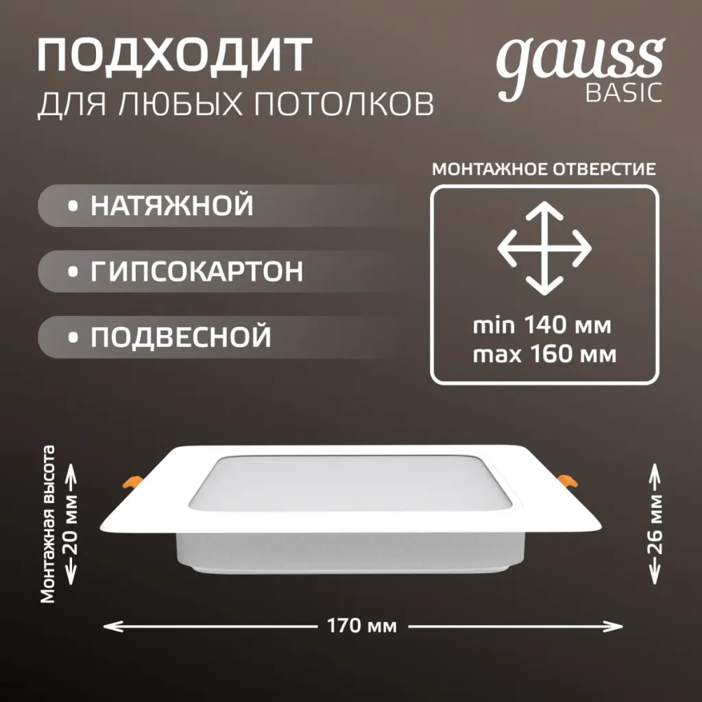 Встраиваемый светодиодный светильник Gauss 939111112