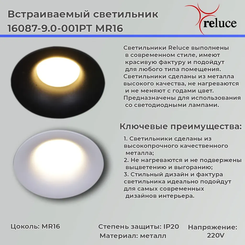 Точечный светильник Reluce 16087-9.0-001PT MR16 BK