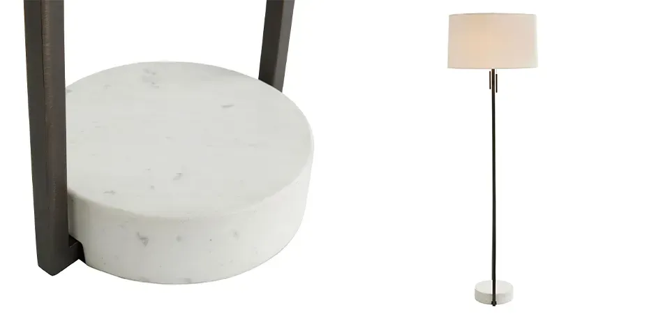 Торшер с прямоугольным тканевым абажуром на белом мраморном основании Silver Threads