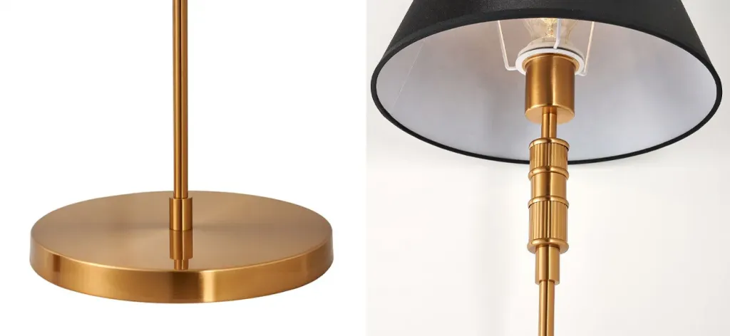 Торшер на изогнутом основании в сочетании черного и золотистого цвета Stable Base