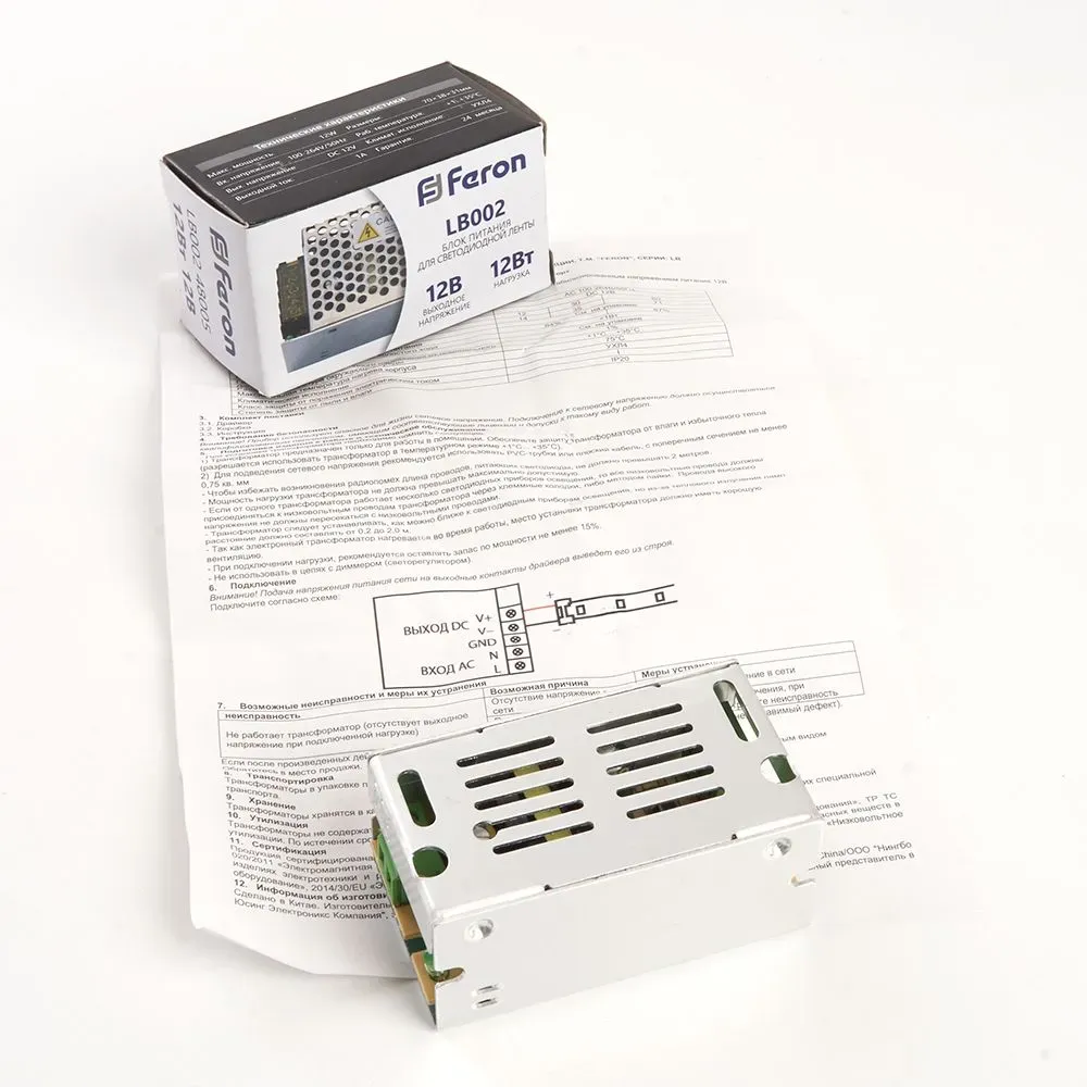 Трансформатор для светодиодной ленты Feron LB002 12Вт 12В IP20 48005