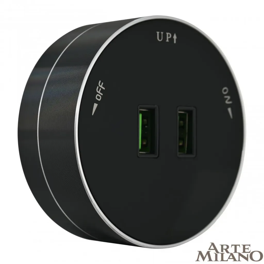 Трековая розетка Arte Milano Am-track-sockets 380066TS LED/USBx2 Black