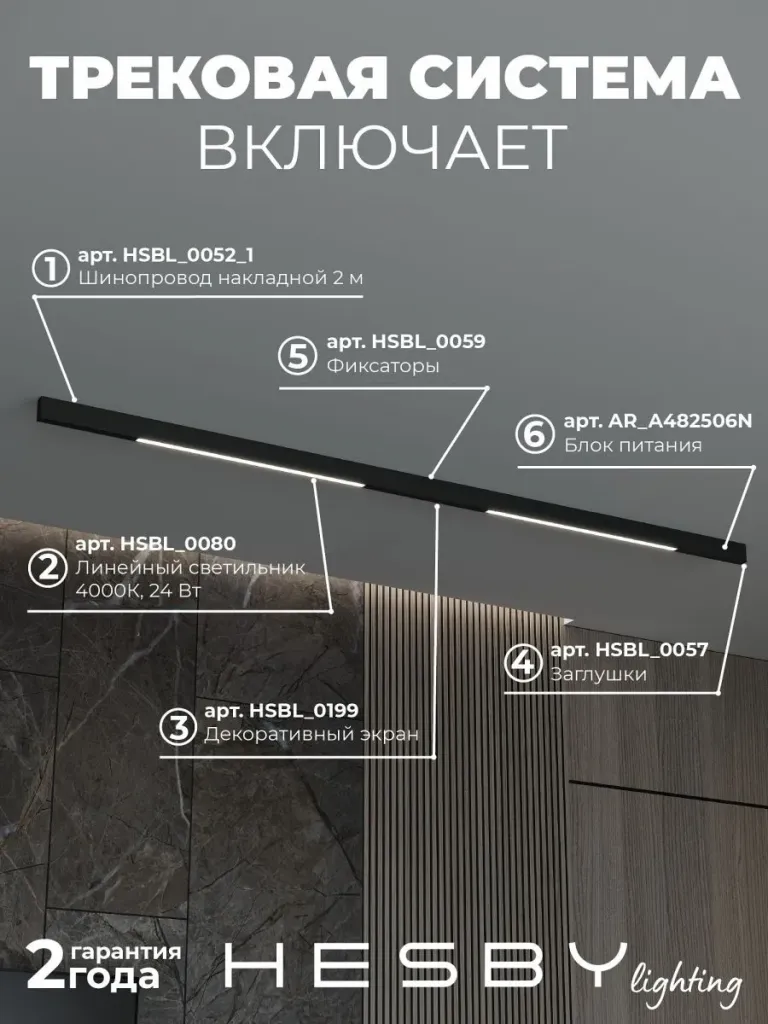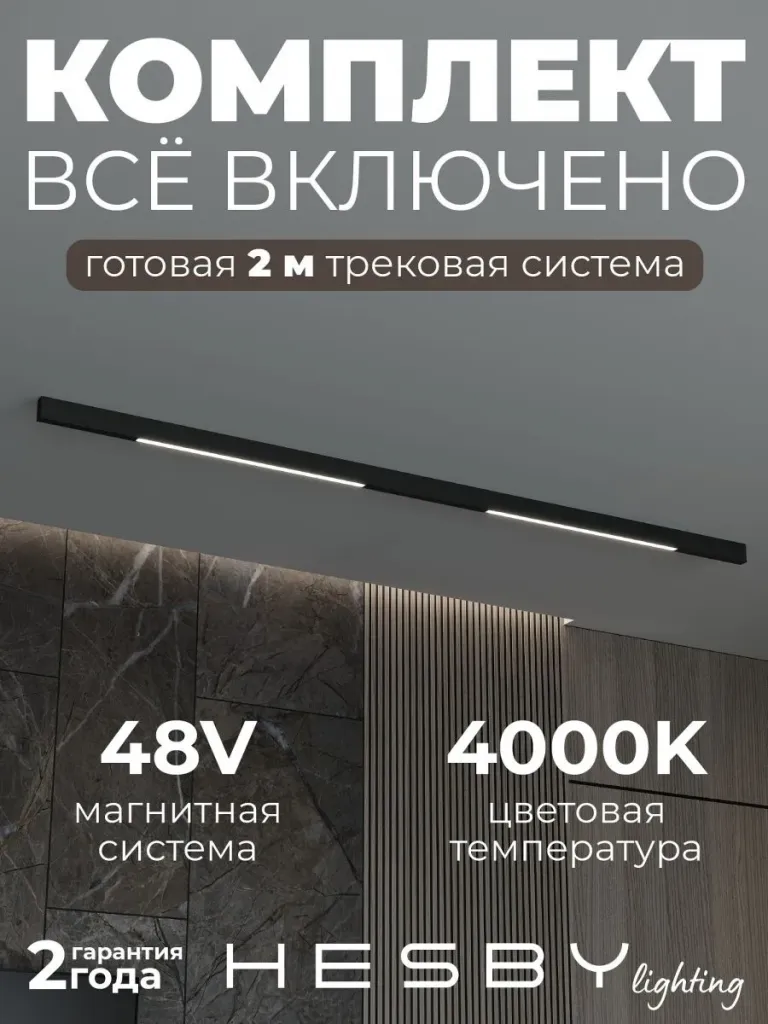 Трековая система со светильниками №1 трехфазная накладная Eldeko (48В, форма - прямая, 2м, 4000K) черная Hesby Lighting HSBL_kompl_E001_NI2B4K