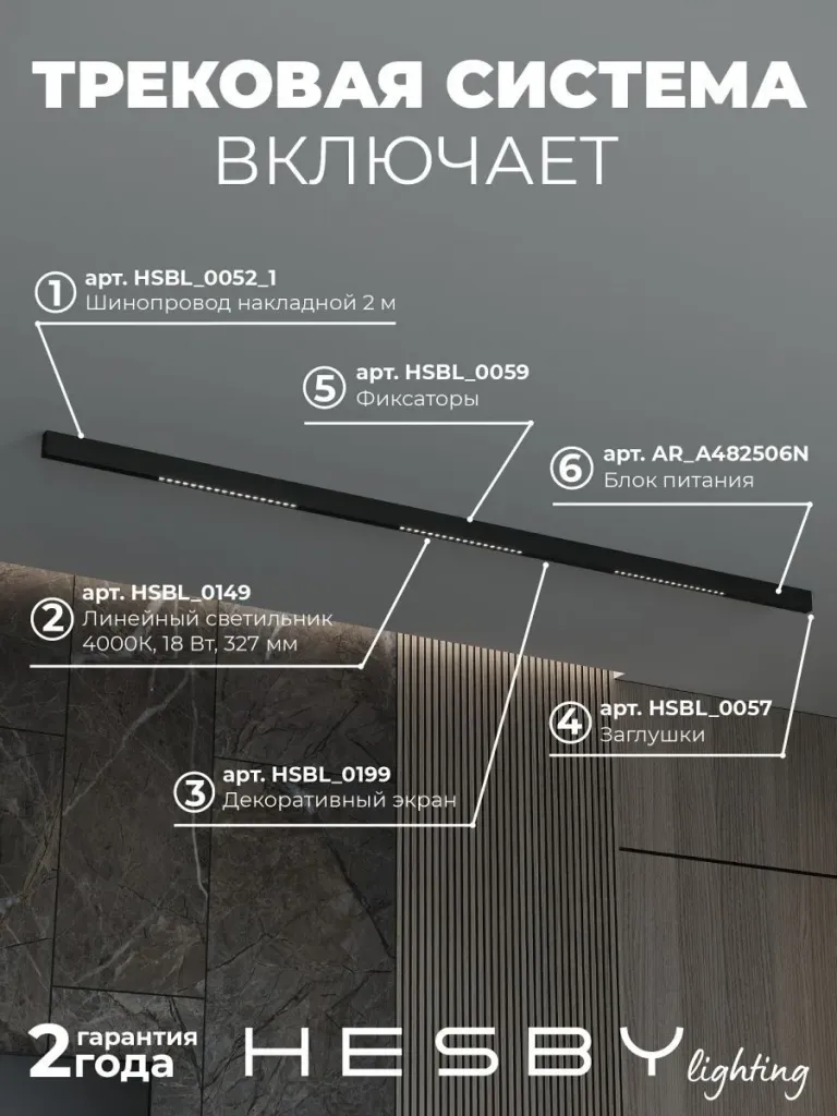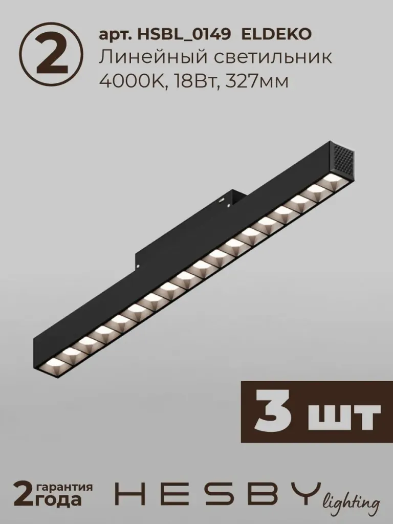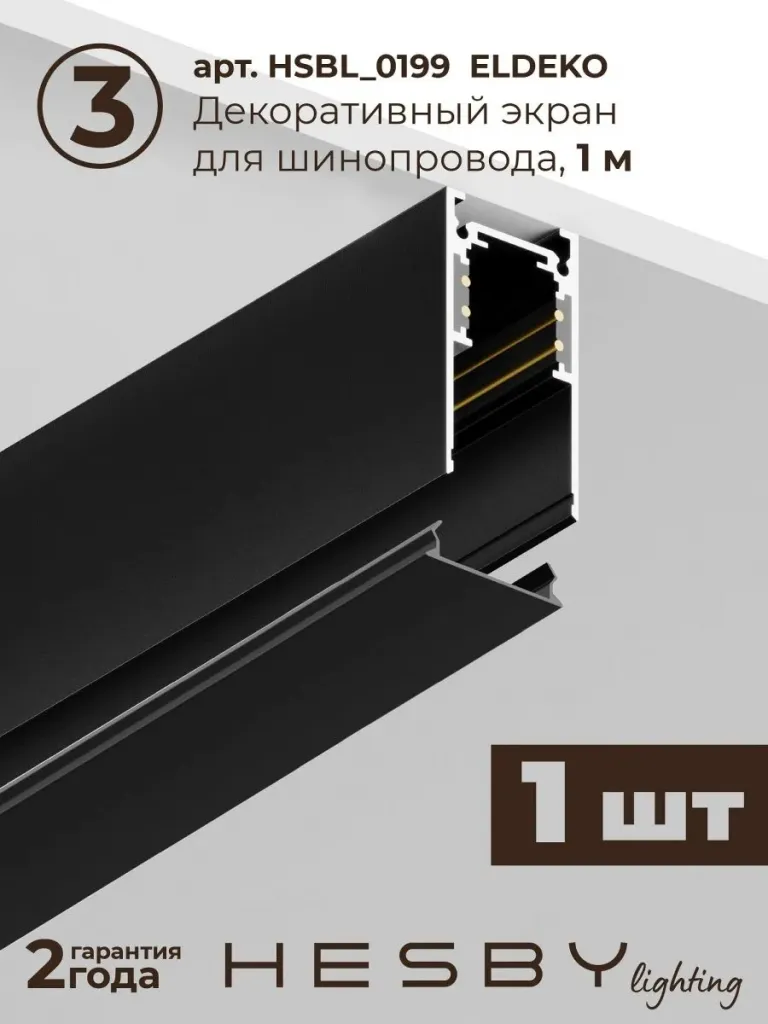 Трековая система со светильниками №2 трехфазная накладная Eldeko (48В, форма - прямая, 2м, 4000K) черная Hesby Lighting HSBL_kompl_E002_NI2B4K