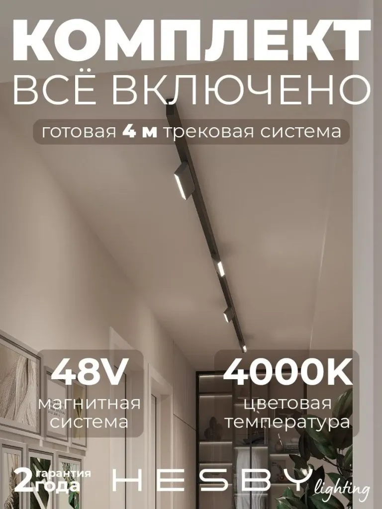 Трековая система со светильниками №4 трехфазная накладная Eldeko (48В, форма - прямая, 4м, 4000K) черная Hesby Lighting HSBL_kompl_E004_NI4B4K