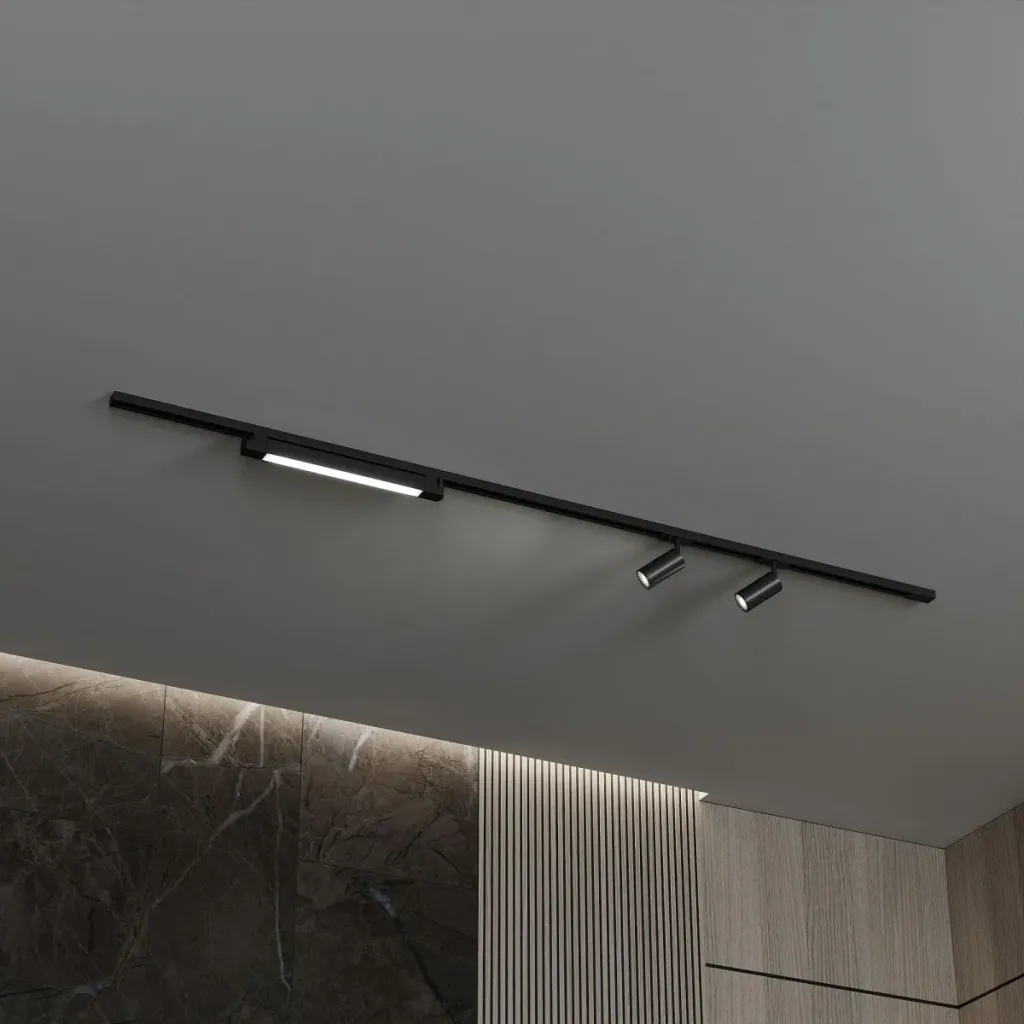 Трековая система со светильниками №5 однофазная накладная Skylite (220В, форма - прямая, 2м, 3000K) черная Hesby Lighting HSBL_kompl_S005_NI2B3K
