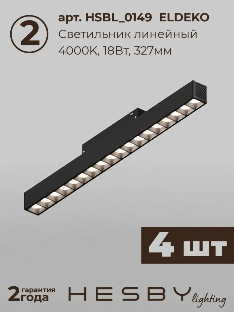 Трековая система со светильниками №7 трехфазная накладная Eldeko (48В, форма - прямая, 4м, 4000K) черная Hesby Lighting HSBL_kompl_E007_NI4B4K