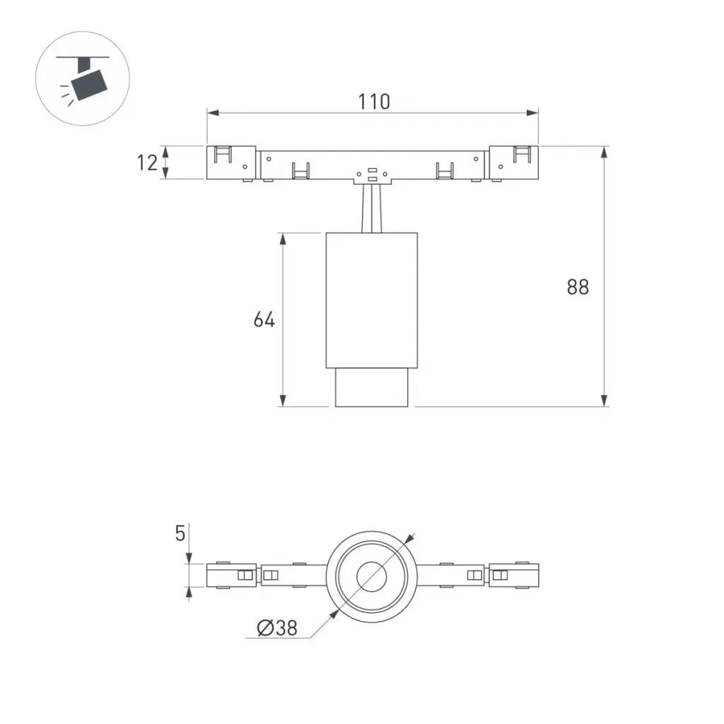 Трековый магнитный светильник Arlight MAG-MICROCOSM-SPOT-ZOOM-R38-5W Warm3000 (BK, 10-55 deg, 24V) (IP20 Металл) 051765