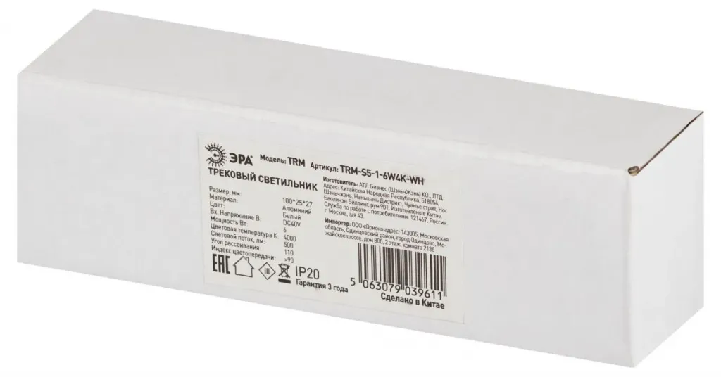Трековый магнитный светильник Эра TRM-S5-1-6W4K-WH Б0059041