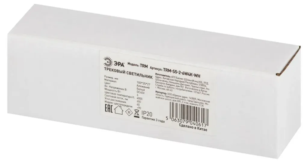 Трековый магнитный светильник Эра TRM-S5-1-6W4K-WH Б0059041