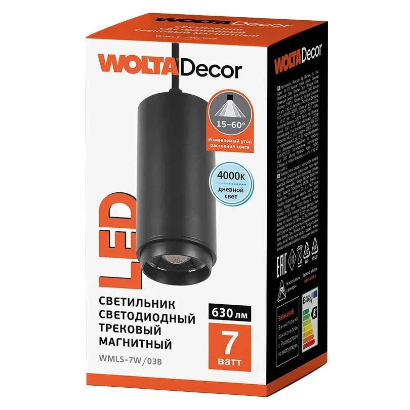 Трековый магнитный светильник Wolta WMLS-7W/03B