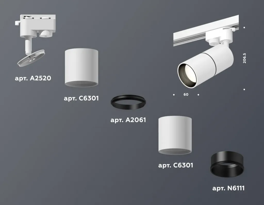 Трековый однофазный светильник Ambrella Light Track System XT6301010 (A2520, C6301, A2061, C6301, N6111)