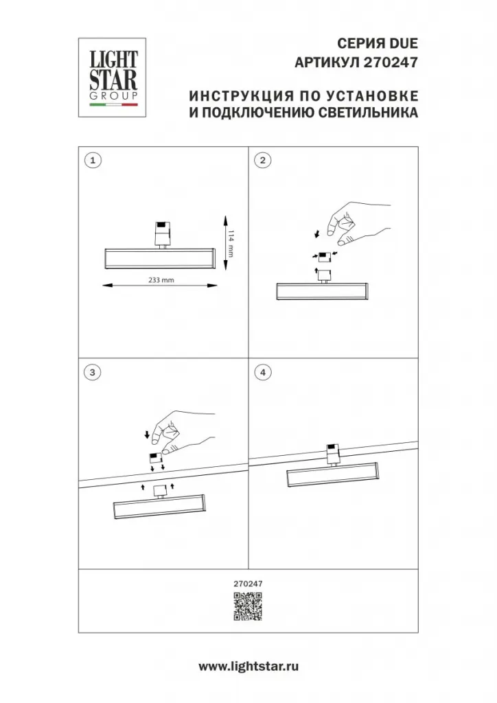 Трековый однофазный светильник Lightstar Due Hermes 270247