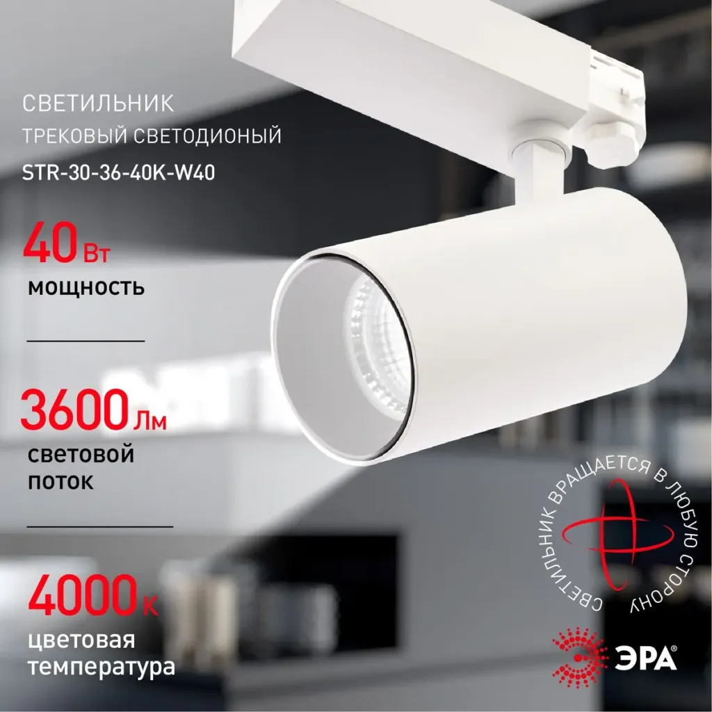 Трековый светильник ЭРА SТR-30-36-30K-W40 Б0049774
