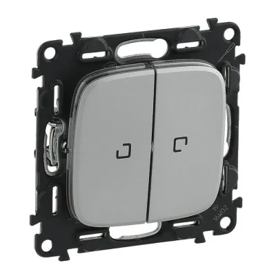 Переключатель двухклавишный Legrand Valena Allure 10А 250В с подсветкой алюминий 752909