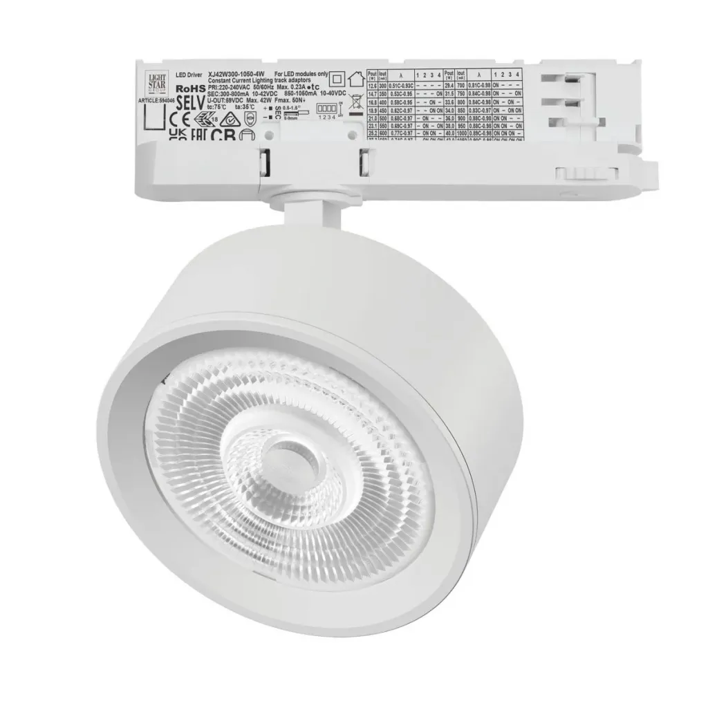Трековый трехфазный светильник Quattro LED 60G с адаптером Lightstar Alta Pro A5646QT60G